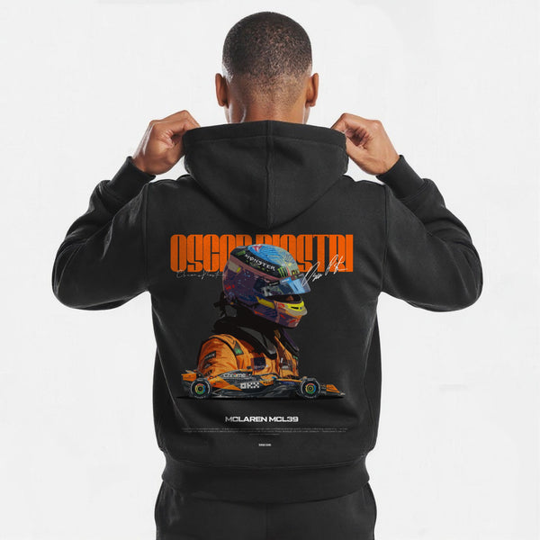 Proudly wear your colors with the Oscar Piastri F1 Signature hoodie, a textile tribute to Formula 1’s rising star. A piece that blends bold graphics and paddock spirit, made for those who live every corner to the fullest.